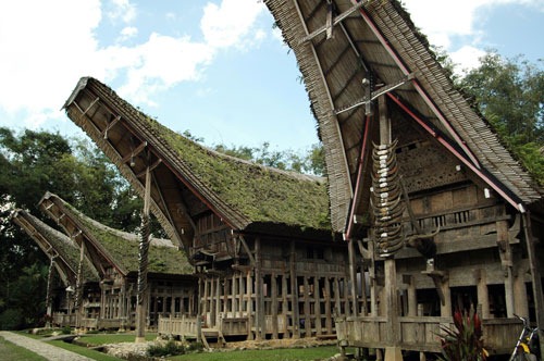 Ovenfor er der traditionelle huse fra Tana Toraja – en spændene del af øen Sulawesi i Indonesien. Tana Toraja folket dyrker primært forfædrenes religion, hvor deres død cermonier er de største og vigtiske af dem alle. Jeg overværede en sermoni hvor ca 60 bøfler og ca 120 grise blev offeret. Desvære har jeg ingen fotos fra mine første år i indonesien. Der var før jeg begyndte at tage fotos.